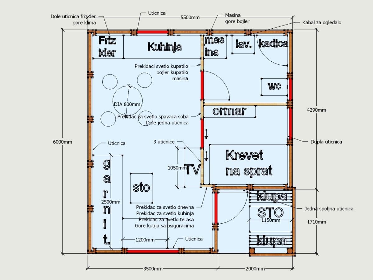 Napomena: Ova specifikacija predstavlja osnovnu ponudu i može se prilagođavati po zahtevu kupca (izolacija, krovni pokrivač, podovi i druge stavke). Po zahtevu izrađujemo i spratove, galerije i potkrovlja, prilagođene vašim potrebama.